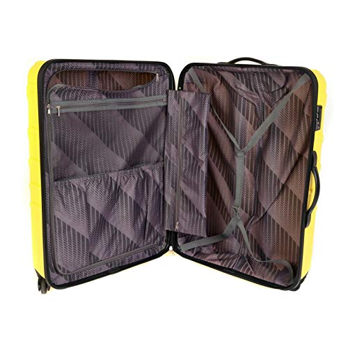 As spotted on BBC’s drama ‘US’, this Constellation 24” Yellow Arc Suitcase has a durable hard shell to keep items safe during travel.