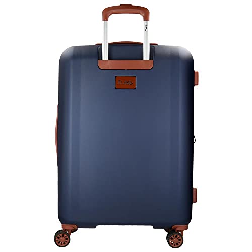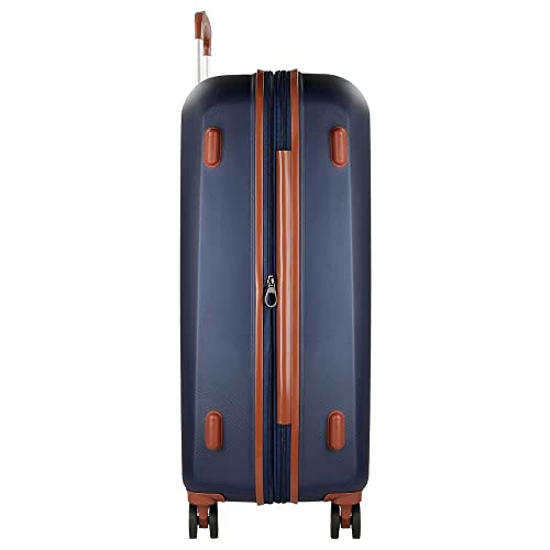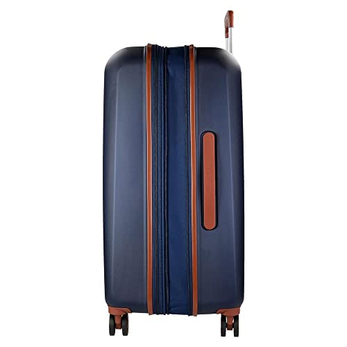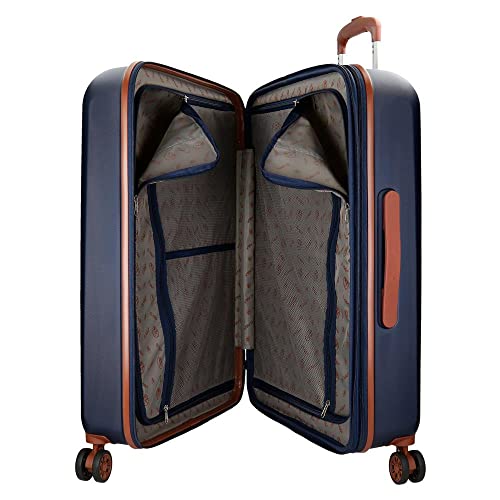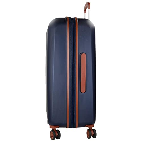 Middelgrote koffer 49 cm x 70 cm x 28 cm. Hij heeft een capaciteit van 81 l en weegt 4 kg. Gemaakt van ABS, een robuust en licht materiaal.