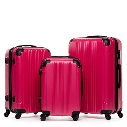Specification: FERGÉ QUÉBEC Kofferset met harde schaal, 3-delig, handbagage, 55 cm, L en XL, set van 3 hardshell koffers, rolkoffer, 4 wielen, 100% ABS, neonroze, 3er Set