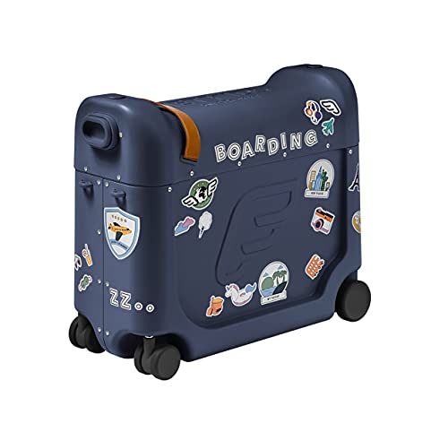 “De hoogwaardige zitkoffer in de kleur midnight blue van het merk Jetkids by Stokke transformeert een Economy-stoel in een First-Class ervaring. In slechts vijf eenvoudige stappen kan deze koffer in een gezellige stoel worden veranderd. De super ruime kinderkoffer is bovendien als handbagage toegestaan en is perfect geschikt om op te zitten, te trekken en te trekken. Dankzij de soepel lopende, 360 graden draaibare wielen kan je kind de bedbox heel eenvoudig zelf trekken of door een volwassene worden getrokken. Een ander hoogtepunt is de bedmodus, die zodra het vliegtuig in de lucht is en de veiligheidsborden kunnen worden gebruikt. Alleen tijdens de start en de landing en bij turbulenties mag de bedbox niet als bed worden gebruikt. Het meegeleverde matras moet met de hand worden gewassen, het is niet geschikt voor de droger. Met de grappige stickers kunnen kinderen hun koffer extra creatief vormgeven. Met een volume van 20 liter vind je in de koffer voldoende ruimte voor een mooie vakantie aan zee, in de bergen, bij oma en opa of overal ter wereld. De bedbox is geschikt voor kinderen tussen 3 en 7 jaar, de beduitrusting wordt aanbevolen voor kinderen vaf 2 jaar. Inhoud levering: bedbox, matras en zijpanelen, verstelbare riem, sticker. Jetkids by Stokke Het idee van het merk JetKids kregen Christi en Halvoor, de twee oprichters van het merk, in 2008 toen ze met hun kleine dochter de eerste lange afstanden vlogen. Je dochter wilde gewoon niet in slaap vallen op de oncomfortabele stoel en zo slachtoffer ze gedeeltelijk aan je eigen. Dit was weer erg oncomfortabel voor de ouders. Na deze gebeurtenis ontdekte je dat dit een algemeen probleem is voor ouders die met hun kinderen reizen. Zo was het idee geboren een bagage voor kinderen te creëren, die aan de ene kant de kinderen beter helpt om in het vliegtuig of de trein te slapen en aan de andere kant toch praktisch kan worden gebruikt. JetKids is onderdeel van de Stokke groep die zijn zetel in Noorwegen heeft en het merk helpt om meer innovatieve producten op de markt te brengen. Overtuig jezelf en je kind jezelf van deze praktische bagage