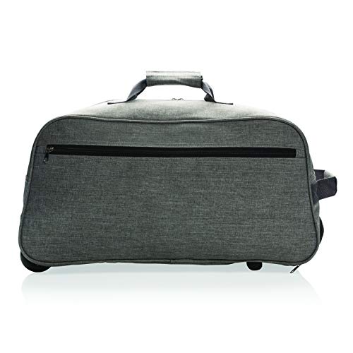 Weekendtas van 600D polyester met uittrekbaar trolley-systeem. Een voorvak en een groot hoofdvak.